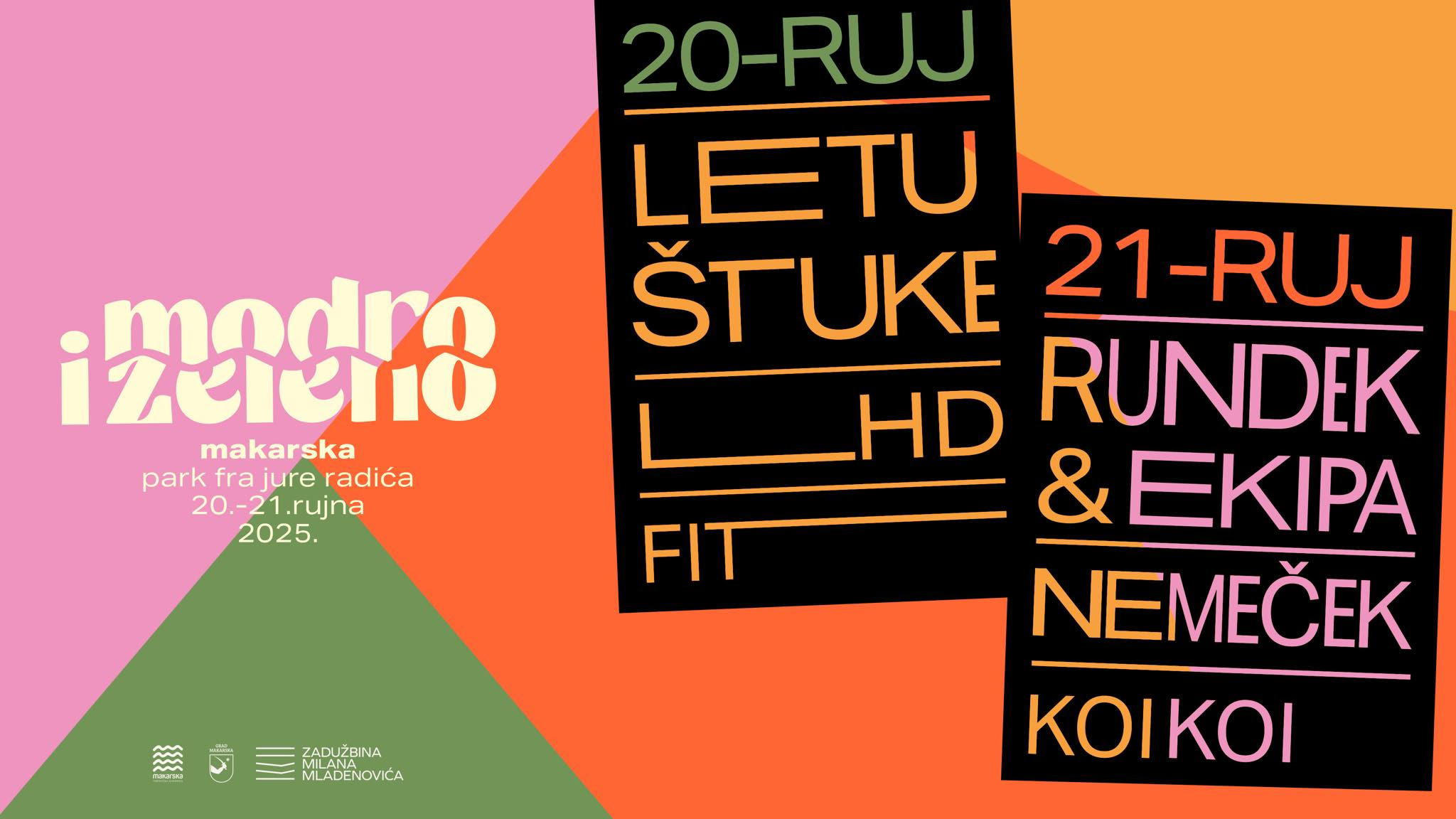 Revijalni program festivala „Modro i zeleno“ počet će 20. rujna. U Parku fra Jure Radića, na predivnoj lokaciji uz makarsku rivu, prve će večeri nastupiti Letu Štuke (Bosna i Hercegovina), LHD (Hrvatska) i Fit (Hrvatska / Srbija), koji upravo završavaju novi album.