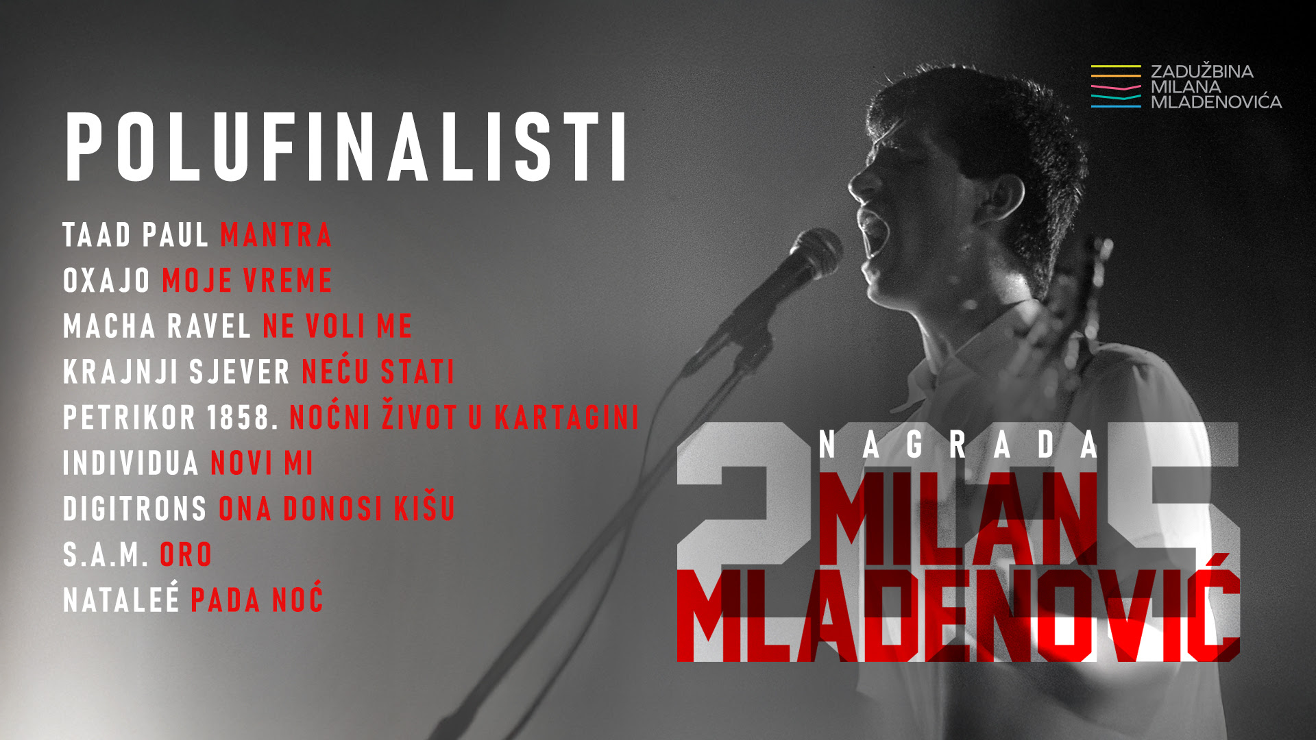 Sredinom jula žiri će odabrati i 12 finalista, koji će se naći na promotivnoj CD kompilaciji, a koju Zadužbina Milana Mladenovića objavljuje svake godine u cilju promocije prepoznatih talenata sa teritorije bivše Jugoslavije. Novi, sedmi dobitnik Nagrade Milan Mladenović znaće se 21. septembra 2025, tradicionalno, na Milanov rođendan. Nagrada Milan Mladenović će i ove godine biti dodeljena u Makarskoj.