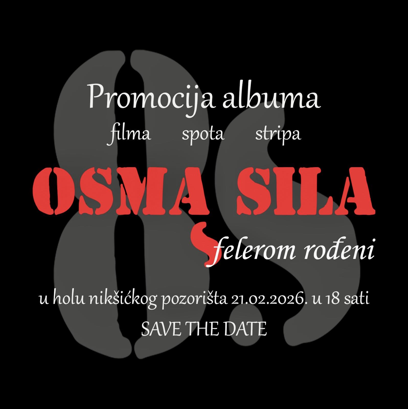 Nikšić će uskoro biti u znaku energije i dobro prepoznatljivog zvuka kultne grupe Osma sila. Ova petorka stiže pred domaću publiku na promociji albuma, ali i stripa i novog video-spota. Bend je nedavno predstavio jednu od pjesama sa albuma na YouTubeu. Numera “Svaku noć (ubiću zbog nje)” dodatno zaokružuje njihov nesvakidašnji događaj.
