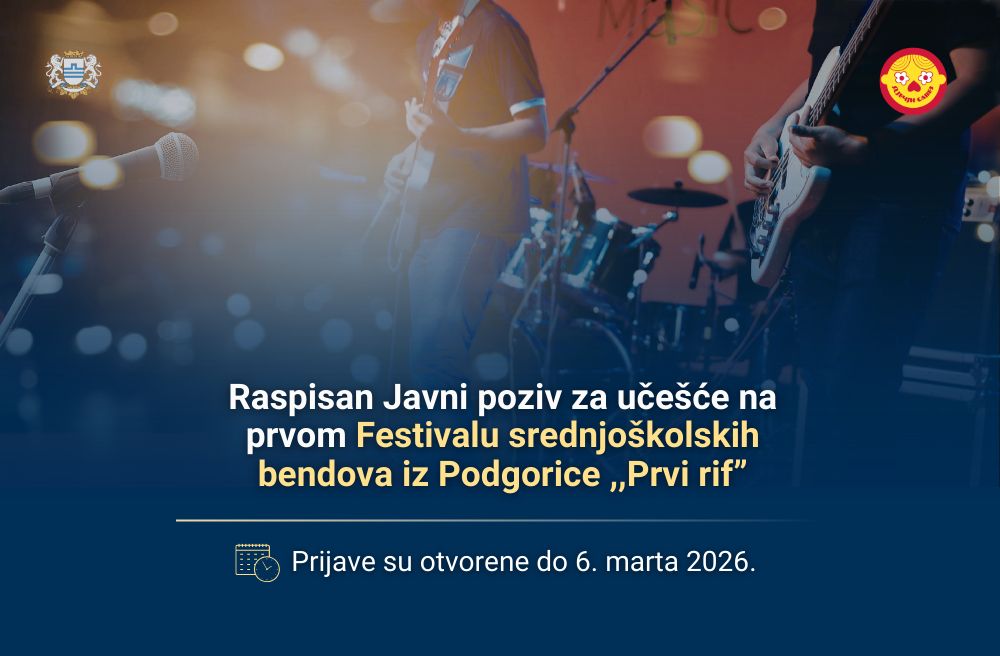 Javna ustanova za brigu o djeci ,,Dječji savez“ Podgorica, raspisala je Javni poziv za učešće na prvom Festivalu srednjoškolskih bendova iz Podgorice, pod nazivom ,,Prvi rif”.