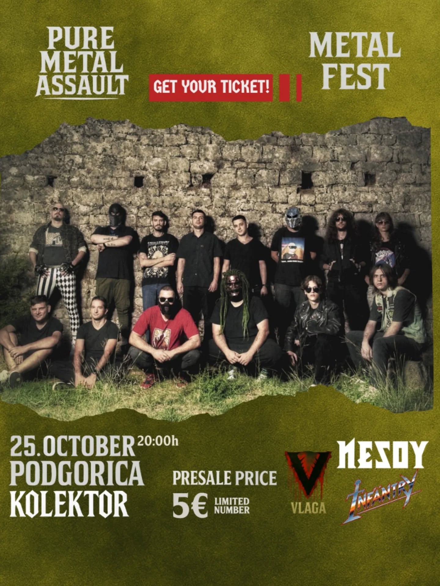 Jeste li spremni za Pure Metal Assault? Ovo metal okupljanje na kojem će vam se predstaviti tri domaća benda i jedan zanimljiv spoken word projekat odvija se večeras na dobro poznatoj lokaciji podgoričkog Kolektora. Nastupaju: Nesoy, Infantry, Vlaga i High Priestess.