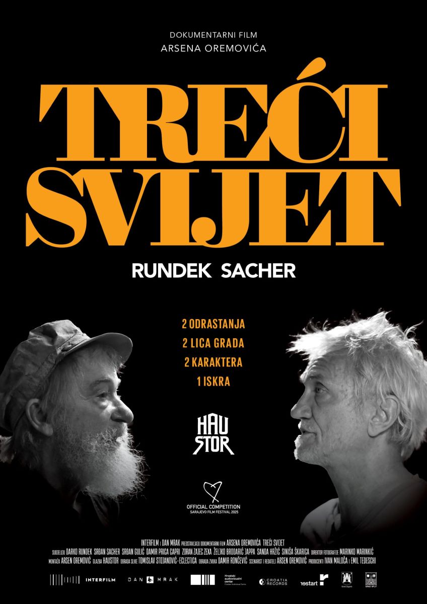 “Treći svijet” zagrebačkog reditelja i scenarista Arsena Oremovića je više od dokumentarnog filma o Haustoru – legendarnom zagrebačkom bendu koji je oblikovao glazbenu scenu bivše Jugoslavije. To je priča o dvije kreativne suprotnosti: Darku Rundeku i Srđanu Sacheru. Kroz prodorne opservacije, novo okupljanje u studiju i živopisnu arhivu, film otkriva kako je u jednom trenutku zajednička sklonost magiji svakodnevice spojila ta dva kreativna svijeta da stvore treći.