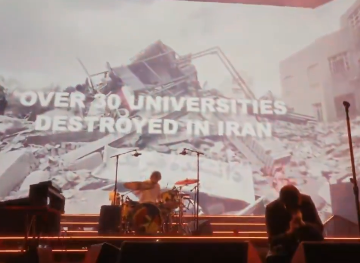 Dok su The Strokes privodili kraju svoju završnu numeru u subotu veče, nastupajući ispred pozadine osvijetljene džamije, snimci na ogromnim LED ekranima iza njih prikazivali su nedavna američka bombardovanja na Bliskom istoku, uz veliki natpis: „Preko 30 univerziteta uništeno u Iranu“ — nakon čega je uslijedio još jedan video-klip rušenja velike zgrade u Gazi kontrolisanom eksplozijom, uz natpis: „Posljednji univerzitet u Gazi.“