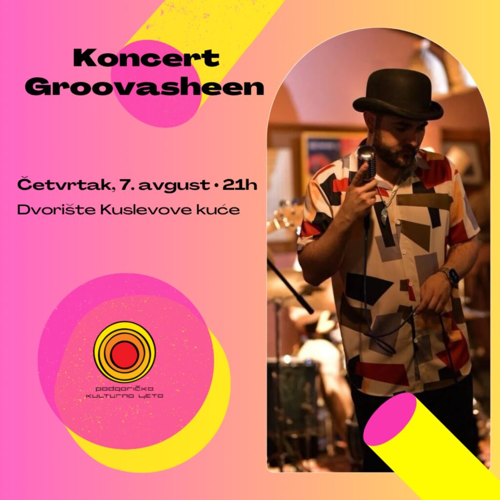 Koncert crnogorskog kantautora Nikole Boškovića, poznatijeg kao Groovasheen i njegovog benda, odžaće se u četvrtak, 7. avgusta, u 21 čas, u dvorištu Kuslevove kuće. Zagrijavanje počinje u 20 časova, uz specijalno odabranu warm-up plejlistu koju priprema Groovasheen, saopšteno je iz Gradskog sekretarijata za kulturu.